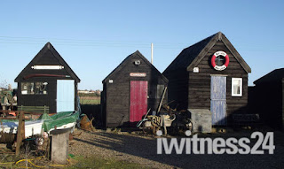 Well, this shed at Southwold was very recently refurbished and tarred. But, black as tar can look when it's new, it's not a good idea to have it like that on a model. It just looks too black and too clean. Even on a recent tarring, there can be a hint of silvery wood behind the black and in order to get that effect I bought the micro pot of silver grey mentioned in the post above and painted the shed with that first, then, when that had dried, I used some back gouache from the palette, softened up with water and went over the silver, taking a little of the black off with a cotton wool bud. Seems to have worked quite well.
